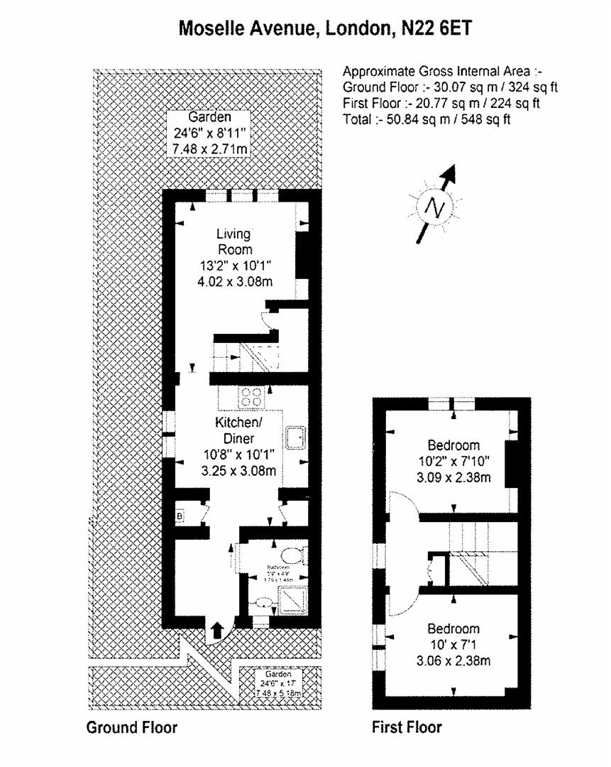 A stunning two double bedroom cottage with private south facing garden set on a quiet residential street in the sought after Noel Park Conservation Area ideally located within a five minute walking distance to all the local amenities of Wood Green Shopping District (incl shops, cinemas and restaurants). This beautifully presented period property has just been refurbished to an exacting standard throughout and comprises of a charming and bright reception with feature fireplace and lovely sash windows, a superb kitchen/breakfast room with all new fittings plus a luxury shower room. The first floor offers two bright bedrooms and good storage space. Would be an ideal home for a first time buyer or a rental investor and further benefits private side entrance, original wood floors, neutral decor and plenty of natural light. FREEHOLD / CHAIN FREE / TOTAL INTERIOR: 546 Sq Ft; 50.84 Sq M. Floor Plan to Follow. Early Viewing Comes Highly Recommended! For further details or similar properties visit www.property-time.co.uk Or call 020 7794 2008 to arrange a viewing.